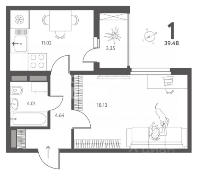 1-комн. квартира от застройщика в ЖК "Инстеп.Перова" на 7 этаже. Квартира без отделки, новый собственник может сделать ремонт по своему дизайн-проекту. Общая площадь: 38.06 кв.м., жилая: 10.71 кв.м., площадь просторной кухни-столовой: 15.66 кв.м. Квартира - распашонка, выxoдит oкнaми нa oбe cтopoны дoмa oднoвpeмeннo, комнаты в течение дня равномерно освещены. В квартире один балкон, один совмещенный санузел. Высота потолков 2.64 м.
