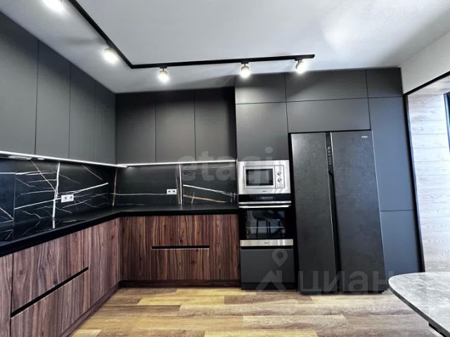 В квартире установлены теплые полы, кондиционер, вместительные встроенные шкафы, угловой диван.