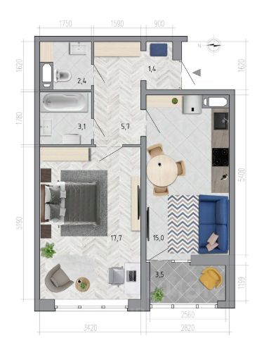 • ✅ Минимальная площадь: 43,9 м²