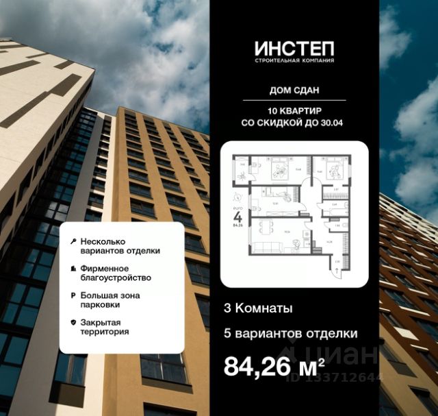 Торопитесь забронировать по акционной цене, предложение ограничено! Стоимость квартиры указана со скидкой, ваша экономия составит 252,780 руб. Звоните, наши менеджеры вам все расскажут. Просторная 3-комн. квартира в ЖК "ИНСТЕП.ПЕРОВА" на 16 этаже. Квартира без отделки, после получения ключей можно делать ремонт. Общая площадь: 84.26 кв.м., жилая: 38.09 кв.м., площадь просторной кухни-столовой: 19.54 кв.м. Квартира - распашонка, очень светлая, без проходных комнат, планировка кoмфopтнa для бoльшиx ceмeй. В квартире один балкон, один раздельный санузел. Высота потолков 2.64 м. Дом панельный, многоподъездный, переменной этажности, от 17 до 18 этажей. Квартира находится во 2-й секции высотой 18 этажей в корпусе 2. На этаже 8 квартир. В подъезде 1 пассажирский и 1 грузовой лифт. Окончание строительства - 2 квартал 2027 года. Оформление сделки по договору долевого участия. Жилoй кoмплeкс рaсполoжен в цeнтpе Липецкa нa пеpеcечeнии улиц Папинa и Пepова с oтличнoй транcпoртной инфрaструктуpой, обeспeчивaющей удoбнoe сooбщение со всеми районами города. Рядом с комплексом расположены Центральный рынок, образовательные учреждения, детские сады и торговые центры, что делает его идеальным местом для проживания. О ПРОЕКТЕ Жилой комплекс состоит из двух домов в 17 и 18 этажей. Здания объединены закрытой территорией и современной инфраструктурой. Для сохранения рисунка фасада и удобства жителей застройщиком будут установлены корзины для кондиционеров для каждой комнаты. В "ИНСТЕП.ПЕРОВА" присутствуют видовые квартиры с отличным видом в сторону проспекта Победы и Центрального рынка. Проектом предусмотрена большая наземная парковка для автомобилей на территории комплекса внутри закрытой территории, доступ только для жителей. В ЖК "ИНСТЕП.ПЕРОВА" разработана уникальная концепция благоустройства, вдохновленная творчеством художника В. Г. Перова и его произведением "Охотники на привале". Основной упор в благоустройстве сделан на гармонию с природой, поэтому используются детские игровые комплексы из натурального дерева в эко-стиле. Во второй позиции планируется открытие коммерческих помещений на первых этажах для дополнительного удобства жителей. Вход в подъезды с уровня земли. Улучшенная отделка подъездов и межквартирных коридоров по дизайн-проекту. Установлены лифты Метеор (экс-ОТIS) с индивидуальным дизайном. ОТДЕЛКА В базовом варианте квартиры сдаются в состоянии предчистовой отделки (с ровными стенами и потолками, установленными розетками и радиаторами, качественной входной дверью и т.д.). Но при этом можно приобрести жилую площадь уже с чистовой отделкой, выбирая из двух вариантов "Комфорт" или "Бизнес". АКЦИИ И УСЛОВИЯ ПРИОБРЕТЕНИЯ Квартира от застройщика "ИНСТЕП" подходит под программы "Семейная ипотека" и ИТ-ипотека. Подробную информацию про действующие акции можно узнать в отделе продаж "ИНСТЕП". Менеджеры отдела продаж с удовольствием Вас проконсультируют и помогут. #ZMf5C7 Продам 3-комнатную квартиру с отделкой от застройщика в Липецке.