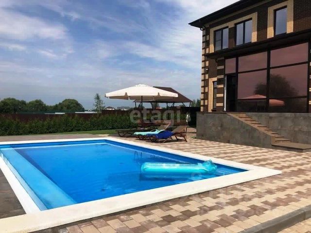 На участке имеется монолитный (железобетонный) ИНФИНИТИ БАССЕЙН с подогревом, системой очистки и фильтрации воды, размером: 4 х 8 метра, (глубина min 1,2 м, max 1,7 м) с ПРОТИВОТОКОМ!!!