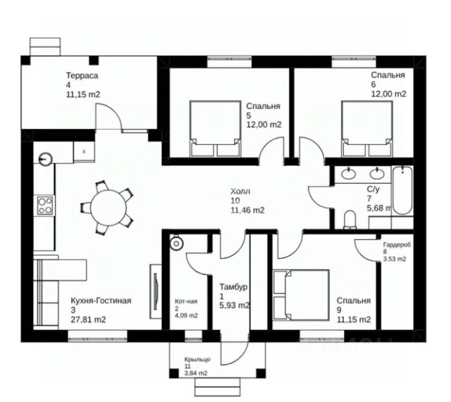 • ✅ Минимальная площадь: 58 м²