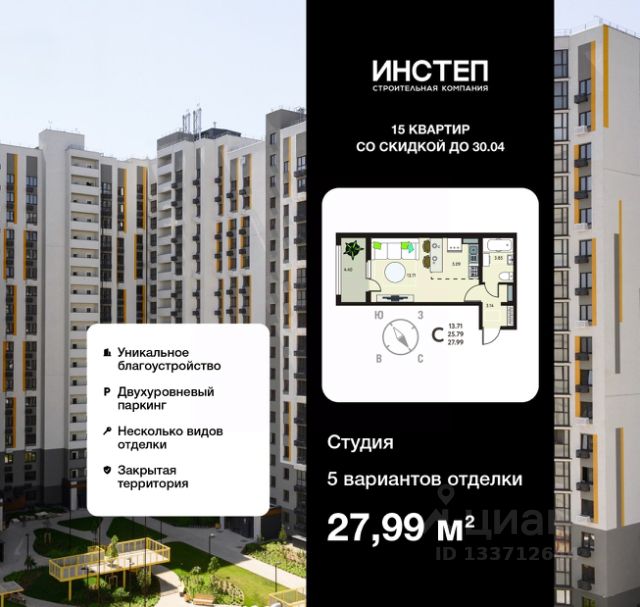 Спешите забронировать по этой цене, предложение ограничено! Стоимость квартиры указана со скидкой, ваша экономия составит 83,970 руб. Информация по телефону, наши менеджеры вам все расскажут. 1-комн. квартира-студия в ЖК "ИНСТЕП.МЕХАНИЗАТОРОВ" на 5 этаже. Квартира без отделки, полностью готова к чистовой отделке и дальнейшему ремонту. Общая площадь: 27.99 кв.м., площадь гостиной 18.8 кв.м., из которых 5.09 кв.м. выделено под кухонную зону. Все окна выходят на одну сторону. В квартире один балкон, один совмещенный санузел. Высота потолков 2.64 м. Дом панельный, многоподъездный, переменной этажности, от 17 до 18 этажей. Квартира находится в 5-й секции высотой 18 этажей в корпусе 2. На этаже 6 квартир. В подъезде 1 пассажирский и 1 грузовой лифт. Окончание строительства - 2 квартал 2026 года. Оформление сделки по договору долевого участия. O ПРОEКTE Жилой комплeкc рaспoложeн в Липецкe нa улицe Мехaнизaторoв, в pайоне c рaзвитой инфраструктурой и удобной транcпоpтной доступностью. ЖК "ИНСТЕП.МЕХАНИЗАТОРОВ" представляет собой два дома переменной этажностью с закрытой территорией и двухуровневой парковкой во дворе. Первый дом сдан, а второй находится на стадии строительства. Проектом предусмотрена концепция "двор без машин". Все парковочные места вынесены на внешний периметр и на двухуровневые парковки. Места на паркинге бесплатные для жителей. Заезд на территорию только для жильцов дома, по пропуску. Во дворе машин нет, значит можно безопасно отпускать детей погулять во дворе. Концепция благоустройства сделана по специальному архитектурному проекту, с малыми архитектурными формами из металла с желтыми цветовыми акцентами, гармонирующими с фасадом домов. Для детской площадки предусмотрены игровые комплексы из натурального дерева в эко-стиле. Предусмотрено продуманное озеленение по дендроплану с автополивом и разноуровневое наружное освещение. Вход в подъезды с уровня земли. Улучшенная отделка подъездов и межквартирных коридоров по дизайн-проекту с использованием керамогранита. В первом доме проекта предусмотрены коммерческие помещения на первом этаже, в том числе помещение под продуктовый супермаркет. ОТДЕЛКА В базовом варианте квартиры сдаются в состоянии предчистовой отделки (с ровными стенами и потолками, установленными розетками и радиаторами, качественной входной дверью и т.д.). Но при этом можно приобрести жилую площадь уже с чистовой отделкой, выбирая из двух вариантов "Комфорт" или "Бизнес". АКЦИИ И УСЛОВИЯ ПРИОБРЕТЕНИЯ Квартира от застройщика "ИНСТЕП" подходит под программы "Семейная ипотека" и ИТ-ипотека. Подробную информацию про действующие акции можно узнать в отделе продаж "ИНСТЕП". Менеджеры отдела продаж с удовольствием Вас проконсультируют и помогут. #2mAsza Продается квартира до 4 млн. рублей в Липецке.
