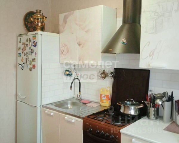 Кухня площадью 8.2кв.м с косметическим ремонтом. Установлена газовая плита и раковина. Окна выходят в тихий, зелёный двор.
