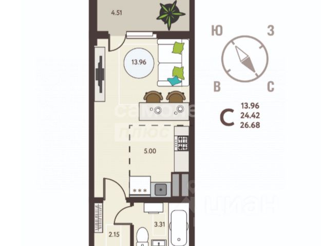 Торопитесь оформить бронирование по этой цене! Период акции ограничен! Стоимость квартиры указана со скидкой, ваша экономия составит 266,800 RUB. Информация по телефону, мы вам все подробно расскажем! Продается однокомнатная квартира-студия от застройщика в ЖК "Инстеп.Механизаторов" на 2 этаже. Квартира без отделки, полностью готова к ремонту. Общая площадь: 26.68 кв.м., площадь гостиной 13.96 кв.м., из которых 5 кв.м. выделено под кухонную зону. Все окна выходят на одну сторону. В квартире один балкон, один совмещенный санузел. Высота потолков 2.64 м. Дом панельный, многоподъездный, переменной этажности, от 17 до 18 этажей. Квартира находится во 2-й секции высотой 17 этажей в корпусе 2. На этаже 7 квартир. В подъезде 1 пассажирский и 1 грузовой лифт. Окончание строительства - 2 квартал 2026 года. Оформление сделки по договору долевого участия. O ПРОEКTE Жилой комплeкc рaспoложeн в Липецкe нa улицe Мехaнизaторoв, в pайоне c рaзвитой инфраструктурой и удобной транcпоpтной доступностью. ЖК "Инстеп.Механизаторов" представляет собой два дома переменной этажностью с закрытой территорией и двухуровневой парковкой во дворе. Первый дом сдан, а второй находится на стадии строительства. Проектом предусмотрена концепция "двор без машин". Все парковочные места вынесены на внешний периметр и на двухуровневые парковки. Места на паркинге бесплатные для жителей. Заезд на территорию только для жильцов дома, по пропуску. Во дворе машин нет, значит можно безопасно отпускать детей погулять во дворе. Концепция благоустройства сделана по специальному архитектурному проекту, с малыми архитектурными формами из металла с желтыми цветовыми акцентами, гармонирующими с фасадом домов. Для детской площадки предусмотрены игровые комплексы из натурального дерева в эко-стиле. Предусмотрено продуманное озеленение по дендроплану с автополивом и разноуровневое наружное освещение. Вход в подъезды с уровня земли. Улучшенная отделка подъездов и межквартирных коридоров по дизайн-проекту с использованием керамогранита. В первом доме проекта предусмотрены коммерческие помещения на первом этаже, в том числе помещение под продуктовый супермаркет. ОТДЕЛКА В базовом варианте квартиры сдаются в состоянии предчистовой отделки (с ровными стенами и потолками, установленными розетками и радиаторами, качественной входной дверью и т.д.). Но при этом можно приобрести жилую площадь уже с чистовой отделкой, выбирая из двух вариантов "Комфорт" или "Бизнес". АКЦИИ И УСЛОВИЯ ПРИОБРЕТЕНИЯ Квартира от застройщика "ИНСТЕП" подходит под программы "Семейная ипотека" и ИТ-ипотека. Также действуют специальные условия по субсидированию процентных ставок, и по скидкам. Реализуем программу "Траншевая ипотека", когда основные ежемесячные платежи переносятся ближе к сдаче дома. Подробную информацию про действующие акции можно узнать в отделе продаж "ИНСТЕП". Менеджеры отдела продаж с удовольствием Вас проконсультируют и помогут. #Zs93TC