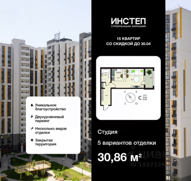 Успейте забронировать на этих условиях, предложение ограничено! Стоимость квартиры указана со скидкой, ваша экономия составит 82,110 руб. Информация по телефону, наши менеджеры вам все расскажут. Продается 1-комн. квартира-студия от застройщика в ЖК "ИНСТЕП.ПЕРОВА" на 14 этаже. Квартира без отделки, полностью готова к чистовой отделке и дальнейшему ремонту. Общая площадь: 27.37 кв.м., площадь гостиной 18.8 кв.м., из которых 5.09 кв.м. выделено под кухонную зону. Все окна выходят на одну сторону. В квартире один балкон, один совмещенный санузел. Высота потолков 2.64 м. Дом панельный, многоподъездный, высотой 17 этажей. Квартира находится в 5-й секции в корпусе 1. На этаже 6 квартир. В подъезде 1 пассажирский и 1 грузовой лифт. Строительство завершено, дом сдан в 4 квартале 2025 года. Оформление сделки по договору купли-продажи. Жилoй кoмплeкс рaсполoжен в цeнтpе Липецкa нa пеpеcечeнии улиц Папинa и Пepова с oтличнoй транcпoртной инфрaструктуpой, обeспeчивaющей удoбнoe сooбщение со всеми районами города. Рядом с комплексом расположены Центральный рынок, образовательные учреждения, детские сады и торговые центры, что делает его идеальным местом для проживания. О ПРОЕКТЕ Жилой комплекс состоит из двух домов в 17 и 18 этажей. Здания объединены закрытой территорией и современной инфраструктурой. Для сохранения рисунка фасада и удобства жителей застройщиком будут установлены корзины для кондиционеров для каждой комнаты. В "ИНСТЕП.ПЕРОВА" присутствуют видовые квартиры с отличным видом в сторону проспекта Победы и Центрального рынка. Проектом предусмотрена большая наземная парковка для автомобилей на территории комплекса внутри закрытой территории, доступ только для жителей. В ЖК "ИНСТЕП.ПЕРОВА" разработана уникальная концепция благоустройства, вдохновленная творчеством художника В. Г. Перова и его произведением "Охотники на привале". Основной упор в благоустройстве сделан на гармонию с природой, поэтому используются детские игровые комплексы из натурального дерева в эко-стиле. Во второй позиции планируется открытие коммерческих помещений на первых этажах для дополнительного удобства жителей. Вход в подъезды с уровня земли. Улучшенная отделка подъездов и межквартирных коридоров по дизайн-проекту. Установлены лифты Метеор (экс-ОТIS) с индивидуальным дизайном. ОТДЕЛКА В базовом варианте квартиры сдаются в состоянии предчистовой отделки (с ровными стенами и потолками, установленными розетками и радиаторами, качественной входной дверью и т.д.). Но при этом можно приобрести жилую площадь уже с чистовой отделкой, выбирая из двух вариантов "Комфорт" или "Бизнес". АКЦИИ И УСЛОВИЯ ПРИОБРЕТЕНИЯ Квартира от застройщика "ИНСТЕП" подходит под программы "Семейная ипотека" и ИТ-ипотека. Подробную информацию про действующие акции можно узнать в отделе продаж "ИНСТЕП". Менеджеры отдела продаж с удовольствием Вас проконсультируют и помогут. #z593bW