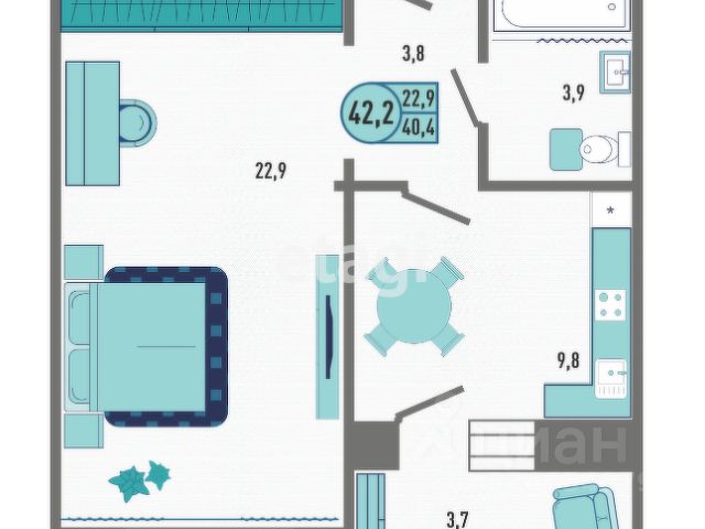 Просторная планировка. Санузел совместный. Потолок высокий.