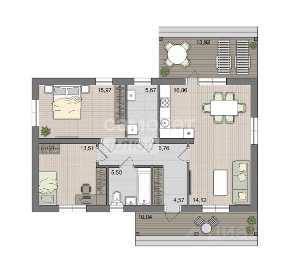 Арт. 133323981 Этот одноэтажный дом, выполненный из газоблоков, отделка фасада (мокрый фасад) штукатурка короед и планкен (лиственница), фундамент железобетонные сваи с ростверком, полы обратная засыпка с утеплением 50 мм и черновой стяжкой, потолочные балки и стропильная система из северного леса, фальцевая кровля с водосточной системой и снегозадержанием, террасы и ступени отделка террасной доской, окна ПВХ с ламинацией, входная дверь, идеально сочетает в себе современный стиль и комфорт. Площадь дома организована с учетом максимальной функциональности, предлагая удобство и простоту в повседневной жизни. Участок 8 соток, забор по периметру участка, откатные ворота и калитка, озеленение придомовой территории. В доме две уютные спальни (при необходимости можно организовать третью, уменьшив площадь кухни-гостинной), просторная кухня-гостиная площадью 30,98 м² является центром дома и открывает прекрасный вид на террасу площадью 13,92 м² — отличное место для летних ужинов на свежем воздухе или отдыха в кругу семьи и друзей. Дом расположен в коттеджном поселке закрытого типа, в поселке предусмотрено парковая и прогулочная зона, детские площадки, озеленение, коммерческая зона с торговым центром, автомойкой, супермаркетом, въездная группа с логотипом поселка, автомобильные дороги будут сделаны администрацией (т.к. это земли администрации). Мы ОТДЕЛ ПРОДАЖ новостроек. Сопровождение сделки и одобрение ипотеки БЕЗ КОМИССИИ! Звоните, пишите! Записывайтесь на консультацию! Этот дом вы можете приобрести по семейной ипотеке со ставкой 6%, по сельской ипотеке со ставкой 3%, одобрение ипотеки бесплатно.