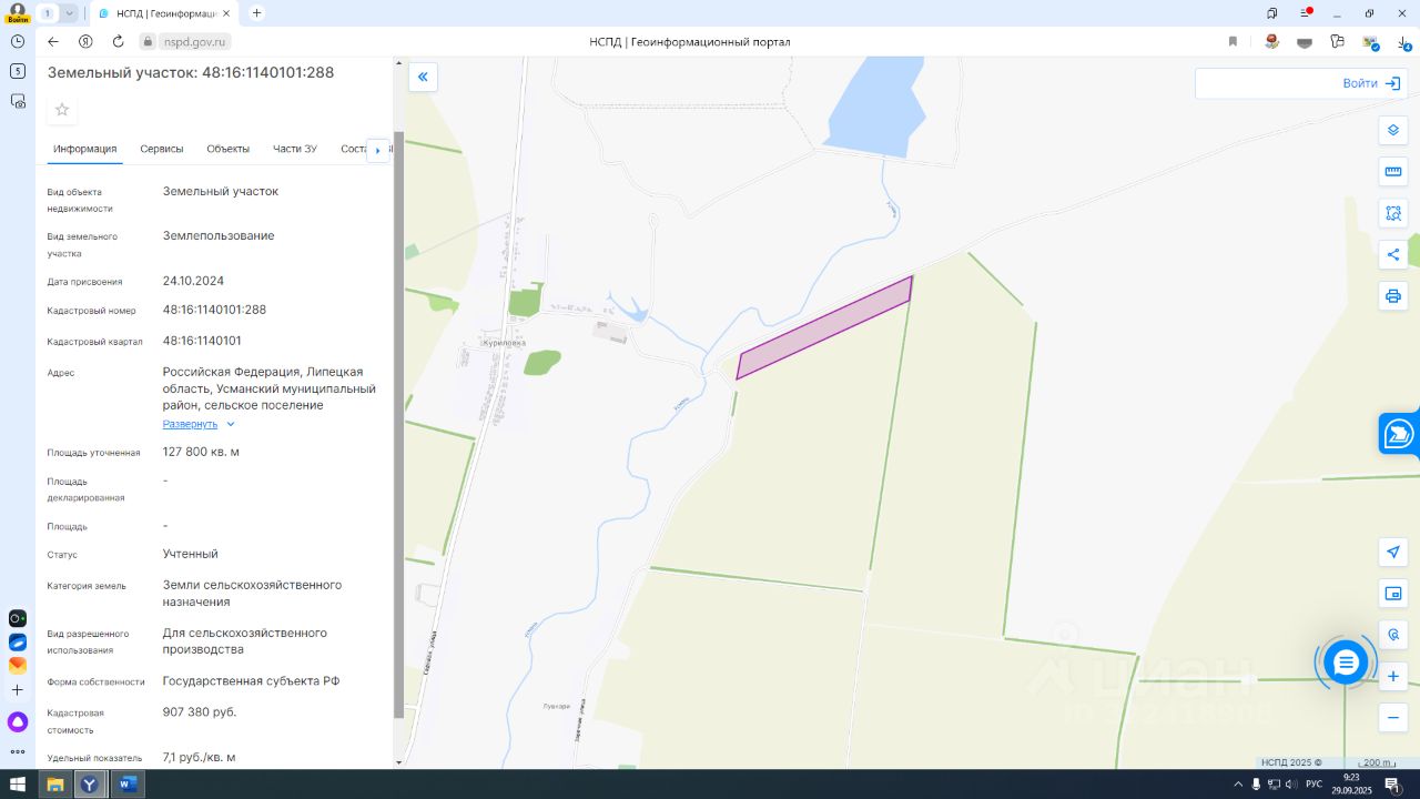 Право на заключение договора аренды земельного участка с кадастровым номером 48:16:1140101:288, площадью 127800 кв.м, категории земель земли сельскохозяйственного назначения, виды разрешенного использования для сельскохозяйственного производства, местоположение: Российская Федерация, Липецкая область, Усманский муниципальный район, сельское поселение Пушкарский сельсовет, село Пушкари.