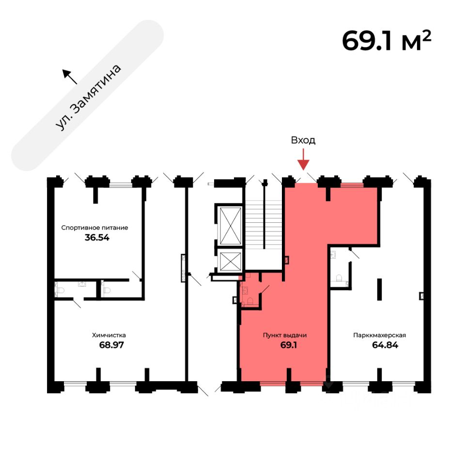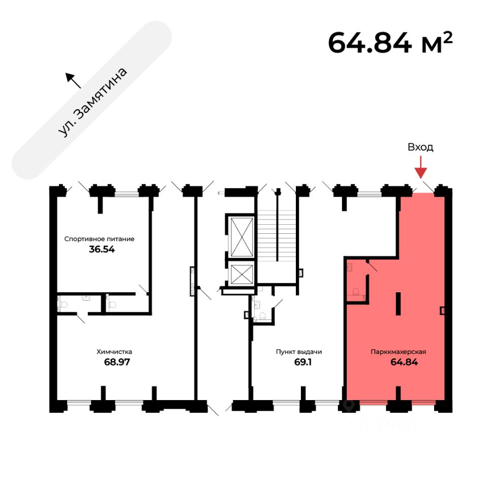 Помещения могут подойти под офисные или торговые. Располагаются на первом этаже нового жилого комплекса по адресу: г. Липецк, ул. Замятина д. 4г.