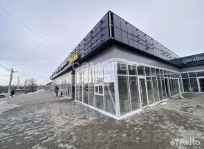 Вход для покупателей на фасаде с витражным остеклением