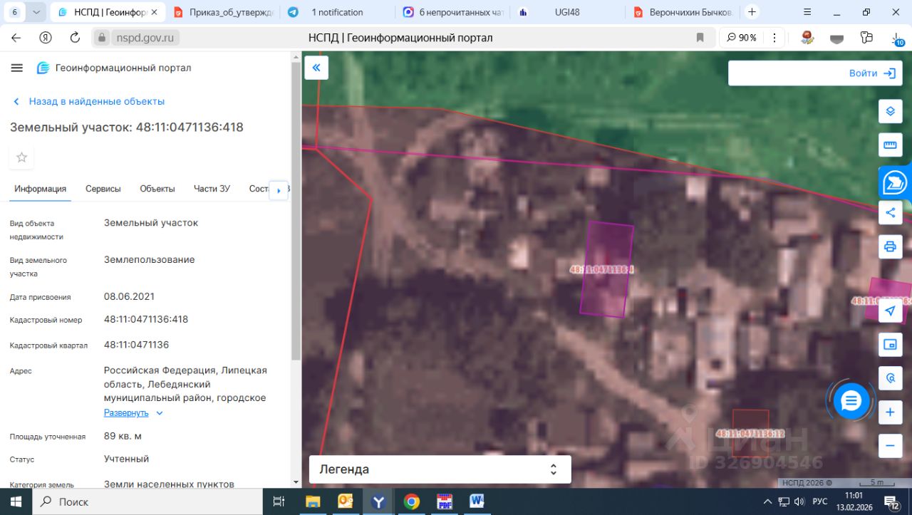 Земельный участок с кадастровым номером 48:11:0471136:418 площадь 89 по адресу Российская Федерация, Липецкая область, Лебедянский муниципальный район, городское поселение город Лебедянь, город Лебедянь