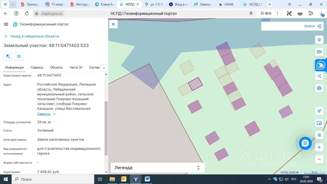 Земельный участок с кадастровым номером 48:11:0471402:533 площадь 29 по адресу Российская Федерация, Липецкая область, Лебедянский муниципальный район, сельское поселение Покрово-Казацкий сельсовет, слобода Покрово-Казацкая, улица Фестивальная