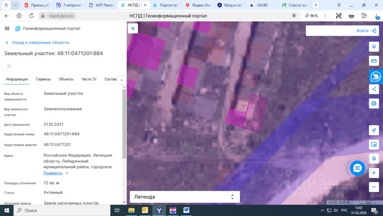 Земельный участок с кадастровым номером 48:11:0471201:684 площадь 72 по адресу Российская Федерация, Липецкая область, Лебедянский муниципальный район, городское поселение город Лебедянь, город Лебедянь