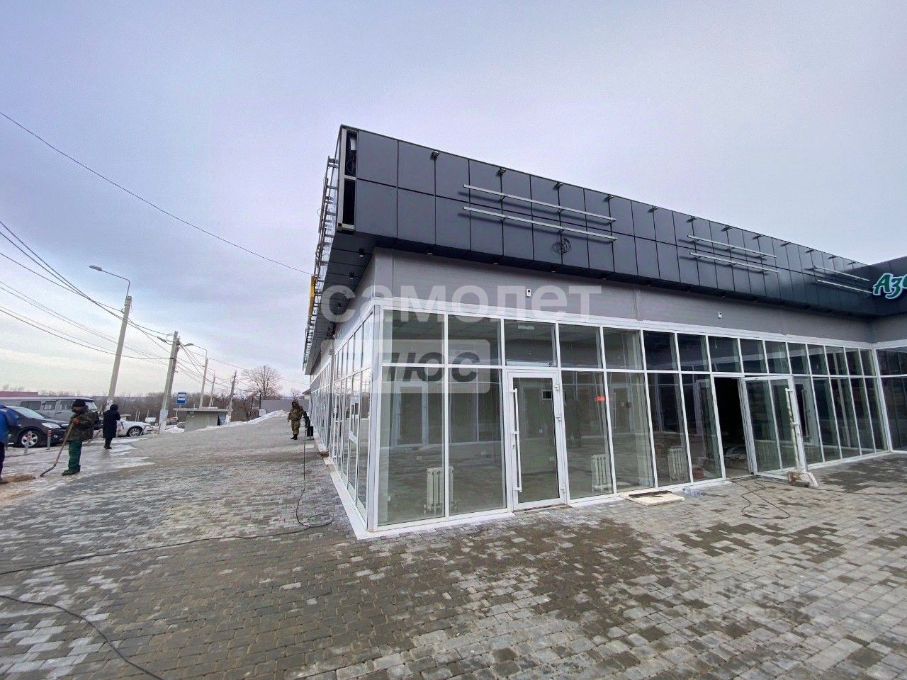 Вход для покупателей на фасаде с витражным остеклением