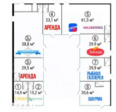 В помещениях 3-7 есть служебный вход с расширенной шириной проема с тыловой стороны