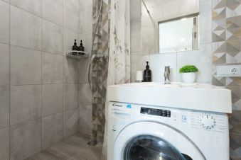 Санузел: средства личной гигиены, полотенца, фен, стиральная машина и водонагреватель