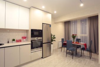 • Кухня: холодильник, плита, микроволновка, чайник, вся необходимая посуда