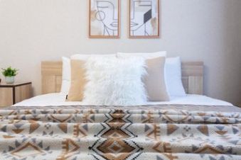 Спальня: белоснежное бельё, одноразовые тапочки, утюг и гладильная доска