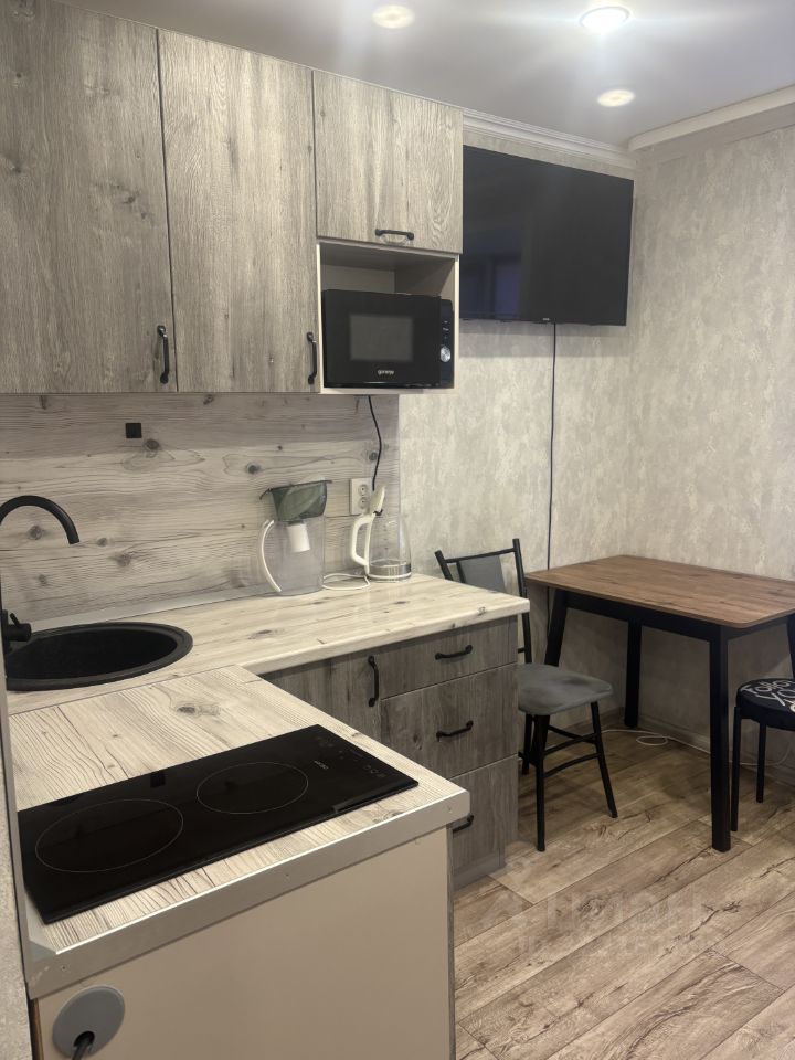 В квартире сделан косметический ремонт, что создаёт приятную атмосферу для проживания. Пространство студии организовано рационально, есть вся необходимая мебель на кухне и в комнате. Ванная комната оборудована ванной, совмещённый санузел. Из техники в вашем распоряжении холодильник, телевизор и стиральная машина. Подключён интернет, что позволяет легко оставаться на связи.