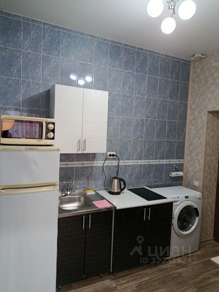 -кухня с бытовой техникой (чайник, микроволновая печь, варочная панель, посуда, холодильник)