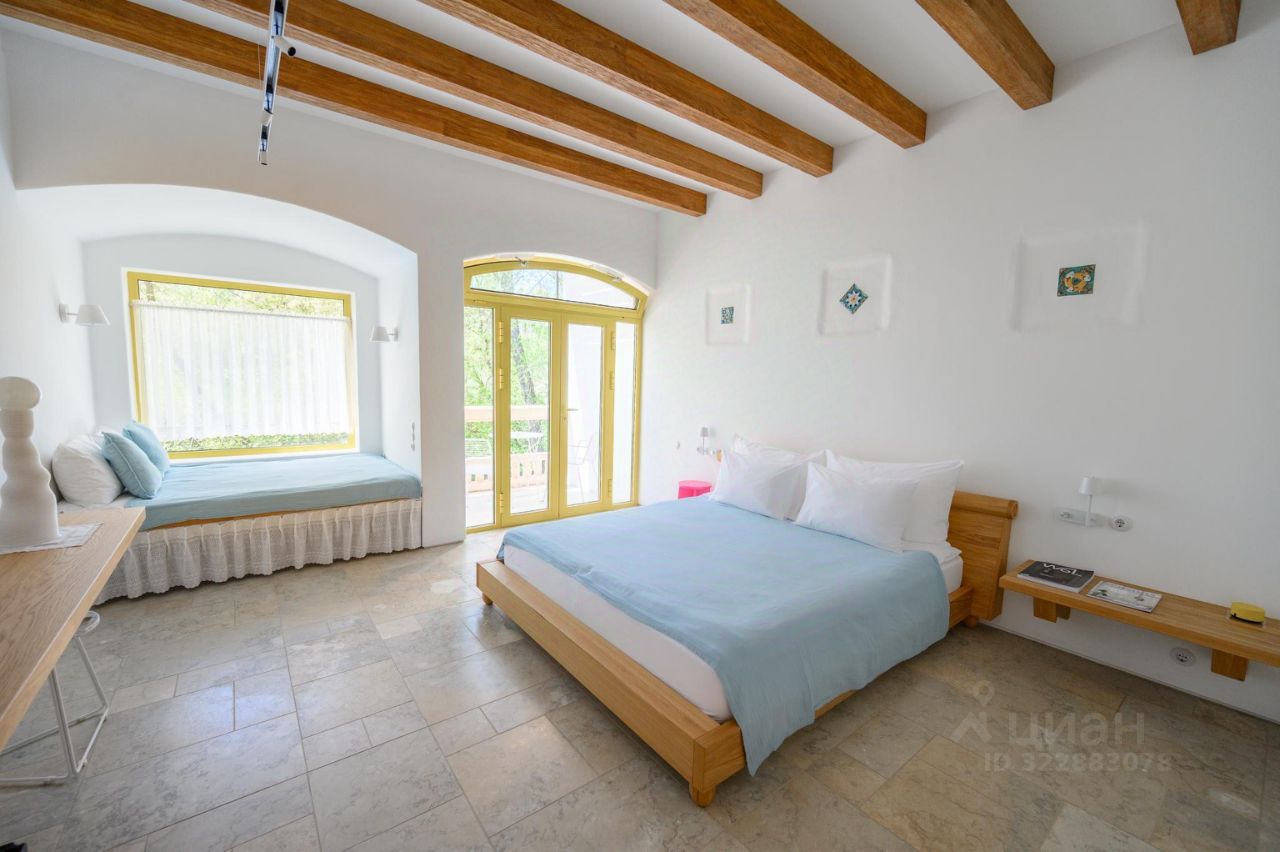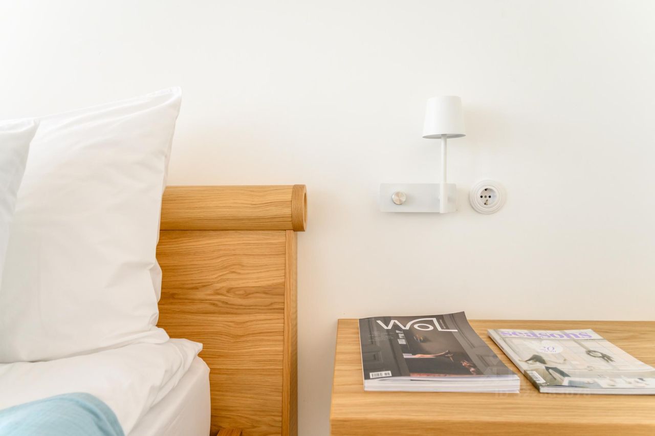 В интерьере номеров — белые тона, контрастная деревянная мебель, керамические изразцы ручной работы от мастерской "Дымов керамика", мозаика и материалы природного происхождения.