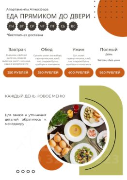 Питание под заказ (за 12 часов): завтрак, обед, ужин