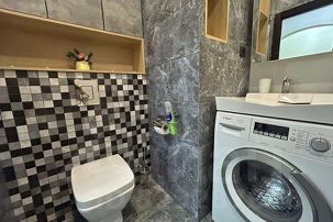 Санузел: средства личной гигиены, полотенца, фен, стиральная машина и водонагреватель
