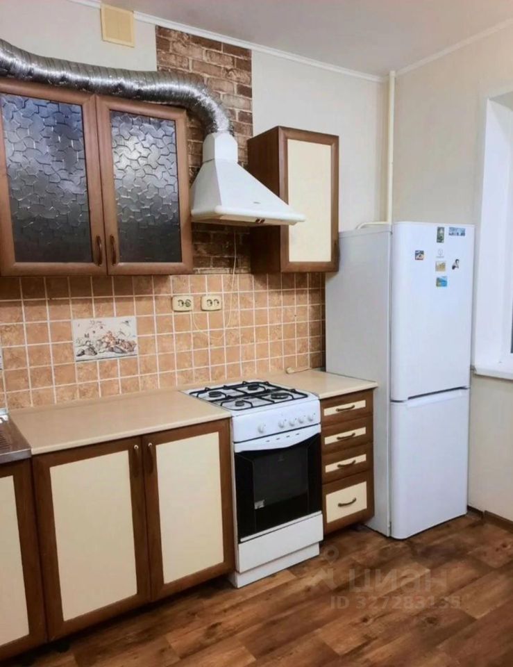 Кухня оснащена необходимой бытовой техникой, включая холодильник и газовую плиту, из мебели кухонный гарнитур, стол и стулья. Санузел совмещенный, оснащен ванной и стиральной машиной.