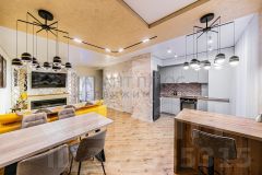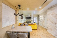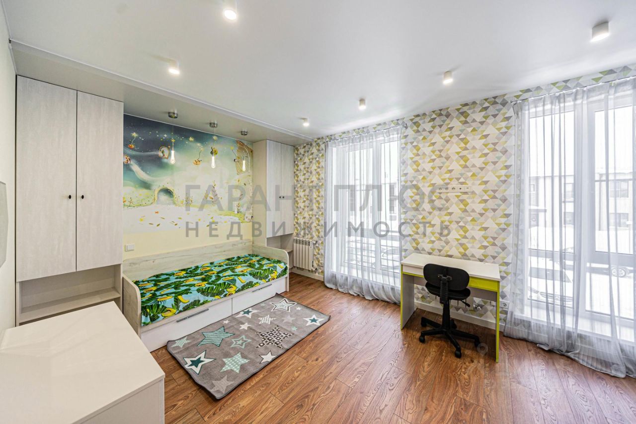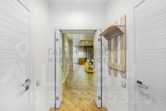 Закрытая территория двора, свой выход на внутренний двор. Планировка: кухня-гостиная, две спальни, два сан узла, гардеробная комната и большая ниша под лестницей.