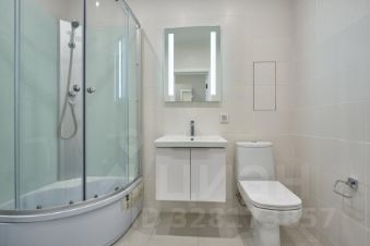 Студия с просторным балконом, выделенной рабочей зоной и продуманным хранением. Совмещённый санузел оснащён удобной душевой кабиной, стиральной машиной и зеркалом с подсветкой.
