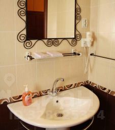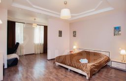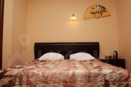 Просторный номер Люкс с двуспальной кроватью. Кроме того, в номере имеется раскладной диван и кресло, рабочий стол , туалетный столик с трюмо, шкаф для одежды, чайник, кондиционер, разовые гигиенические принадлежности, тапочки.