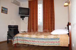 В номере установлена двуспальная кровать, шкаф, кресло, журнальный столик и телевизор. Для удобства гостей предусмотрена система кондиционирования.Также, чайник, разовые гигиенические принадлежности, тапочки.