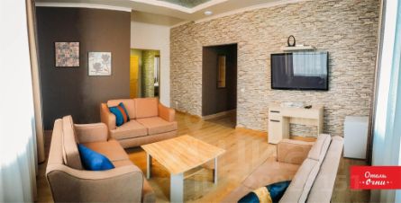 Большой номер с двумя комнатами повышенной комфортности. Стильный интерьер, прекрасное оснащение приятный вид из окна.
