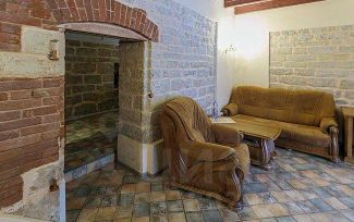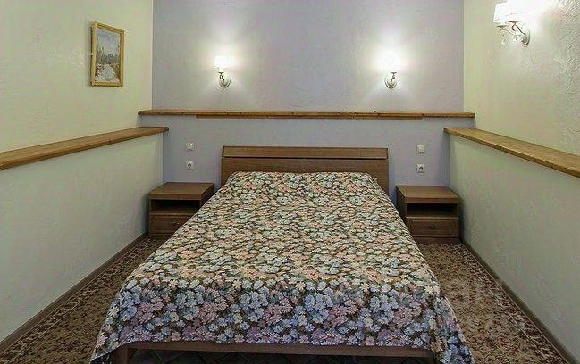 В каждом номере 2х спальная кровать + односпальная кровать (диван), рабочий стол, кресла, сан. узел, шкафы.