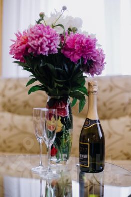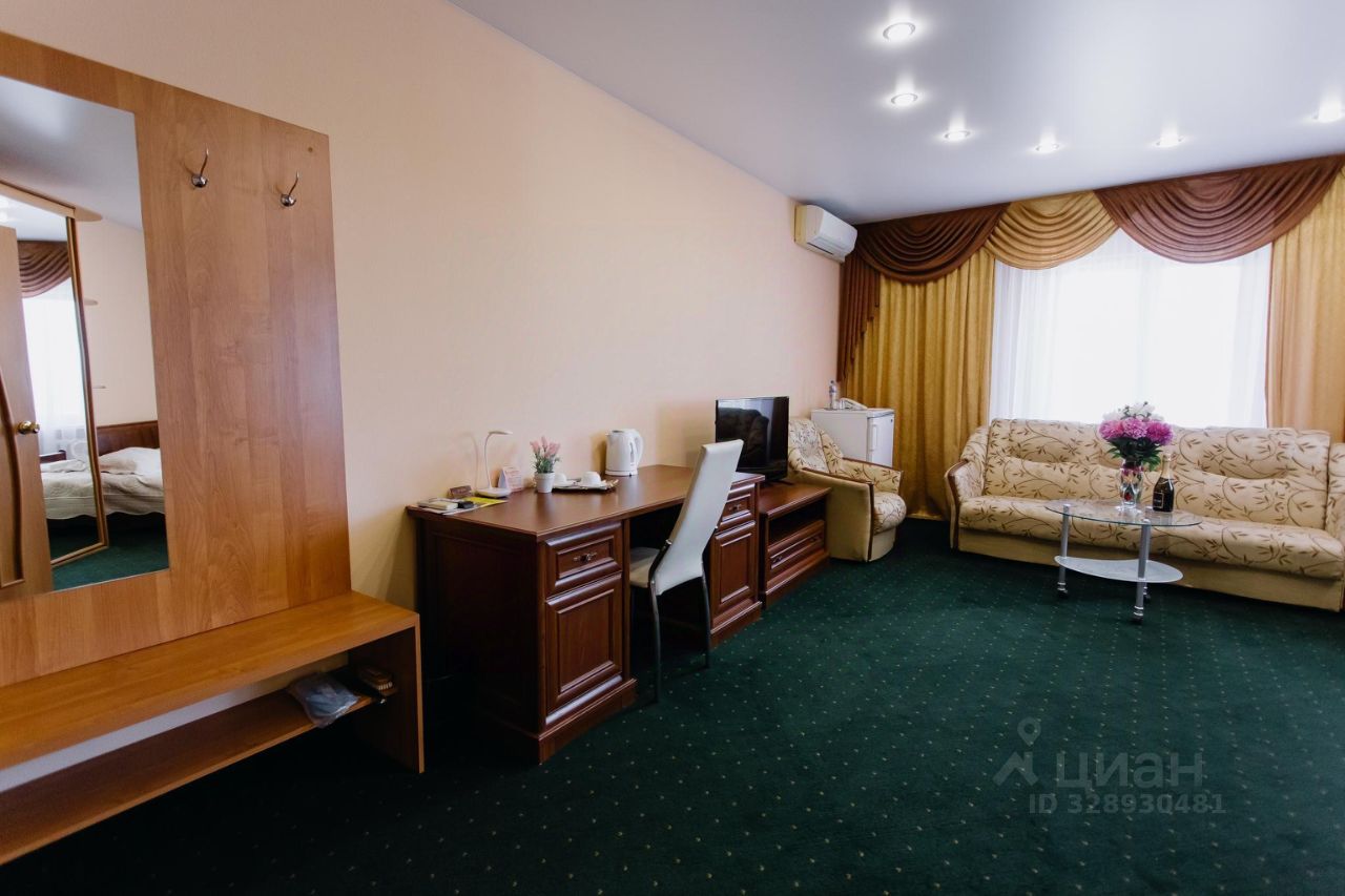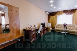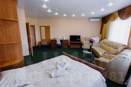 Просторный и уютный номер с большой двухспальной кроватью и прикроватными тумбочками, а также отдельно оборудована зона для отдыха с мягкой мебелью (2 кресла и диван) и журнальным столиком, рабочее место с большим письменном столом. В номере также присутствует вместительный угловой шкаф для одежды, ЖК телевизор, холодильник, телефон, WI-FI, климат-контроль. ,эл. чайник. В ванной комнате: набор полотенец, халаты, тапочки, комплект туалетных принадлежностей и фен.