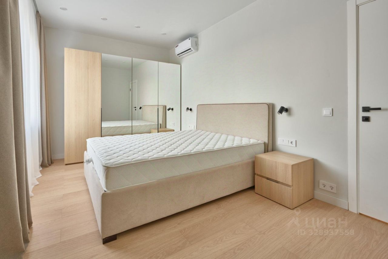 Двухкомнатная квартира с балконом на кухне. Уютная спальня обустроена кроватью с ортопедическим матрасом и плотными шторами блэкаут для глубокого сна. Вторая комната многофункциональна и может стать детской либо рабочим кабинетом. Совмещенный санузел оборудован ванной, стиральной машиной и зеркалом с подсветкой.