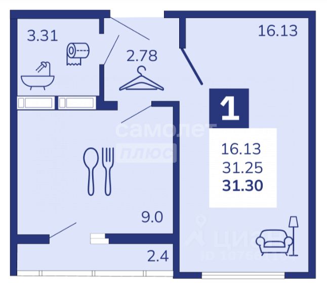 Кухня оснащена обеденной зоной , холодильником, кухонным гарнитуром. Из кухни есть выход на лоджию.
