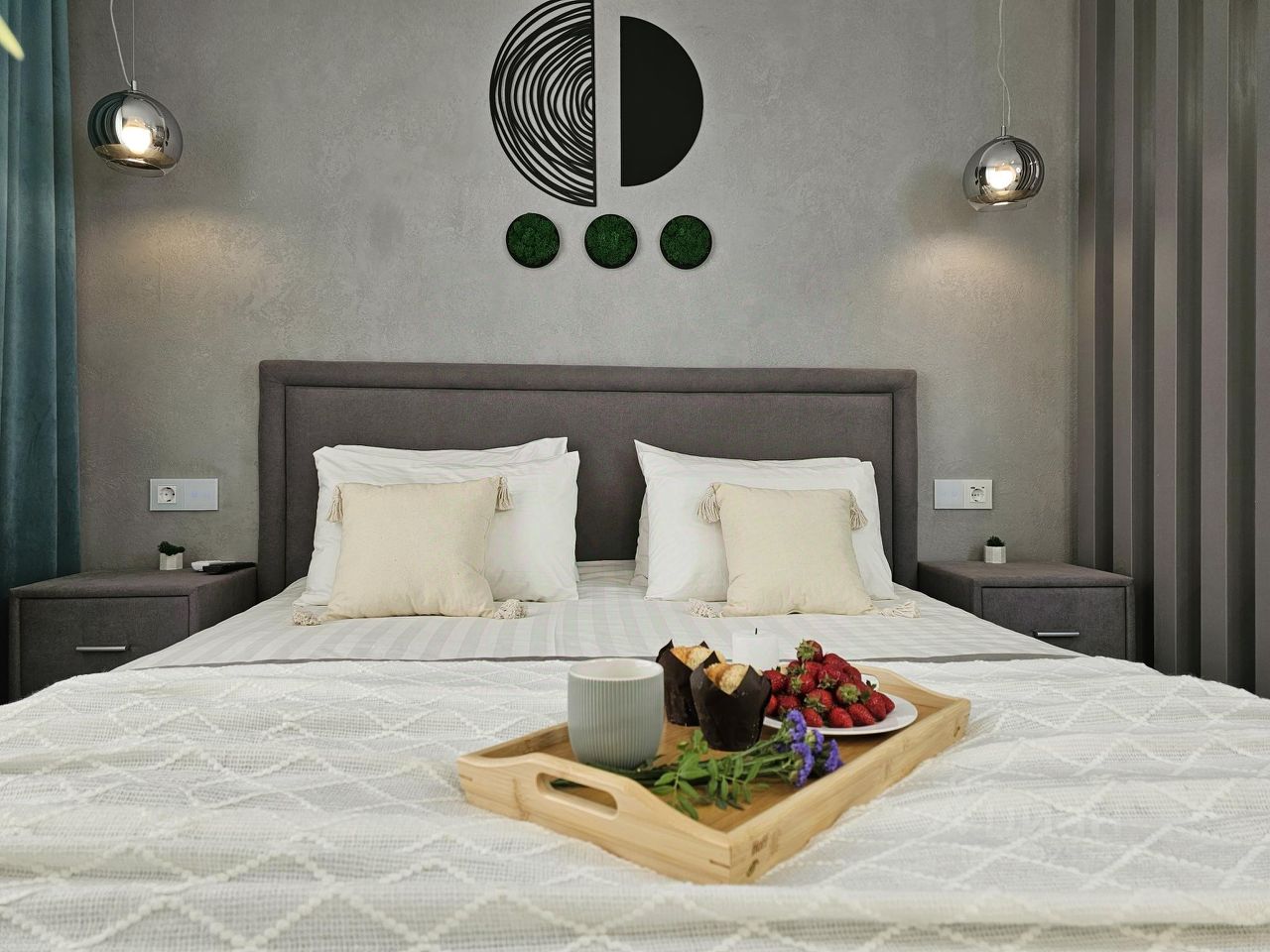 Зона спальни: белоснежное бельё, одноразовые тапочки, утюг, гладильная доска