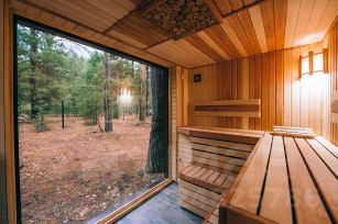 Сауна с видом на лес.
