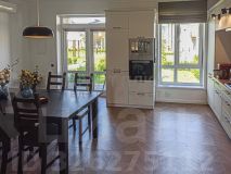 Закрытая территория двора, свой выход на внутренний двор. Планировка: кухня-гостиная, две спальни, два сан узла.