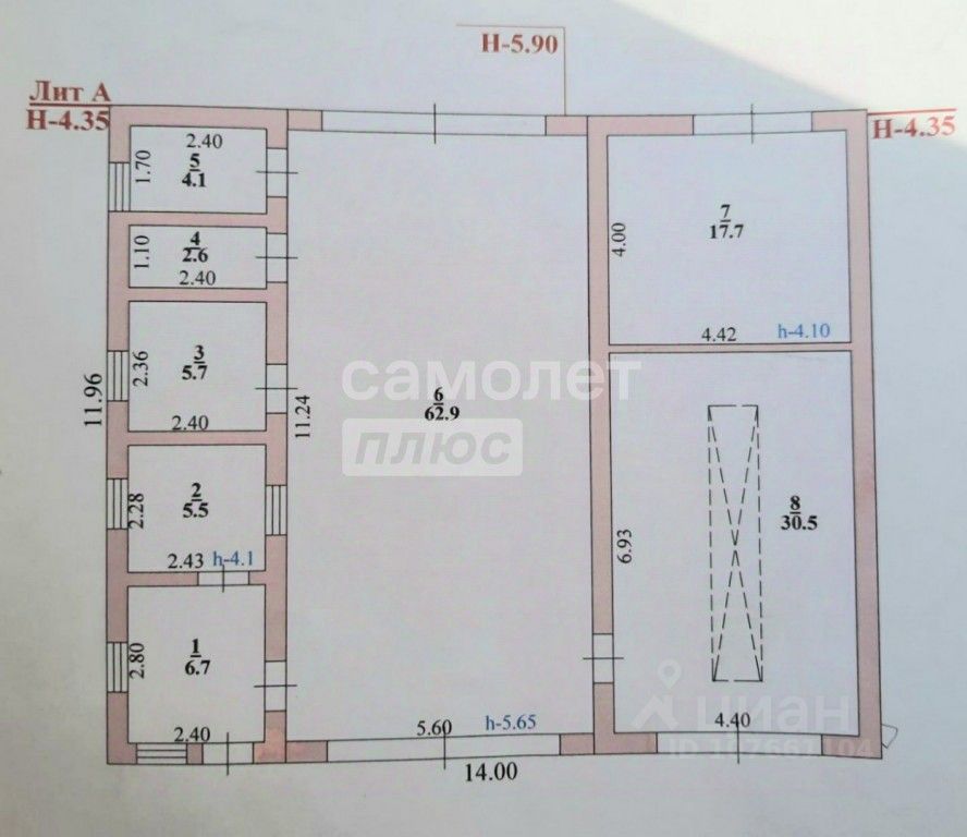 8 помещений:5 вспомогательных,3 основных.