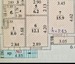Два раздельных помещения 12 и 16 квадратных метра, два помещения коридорного типа, кладовка (гардеробная), санузел совмещённый.