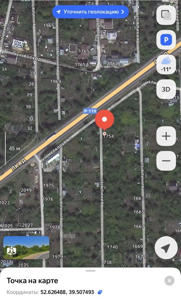2-й от асфальтированной центральной дороги рядом с официальным асфальтированным съездом с трассы Р-119 Орел-Тамбов (ЛКАД), что на данный момент редкость!