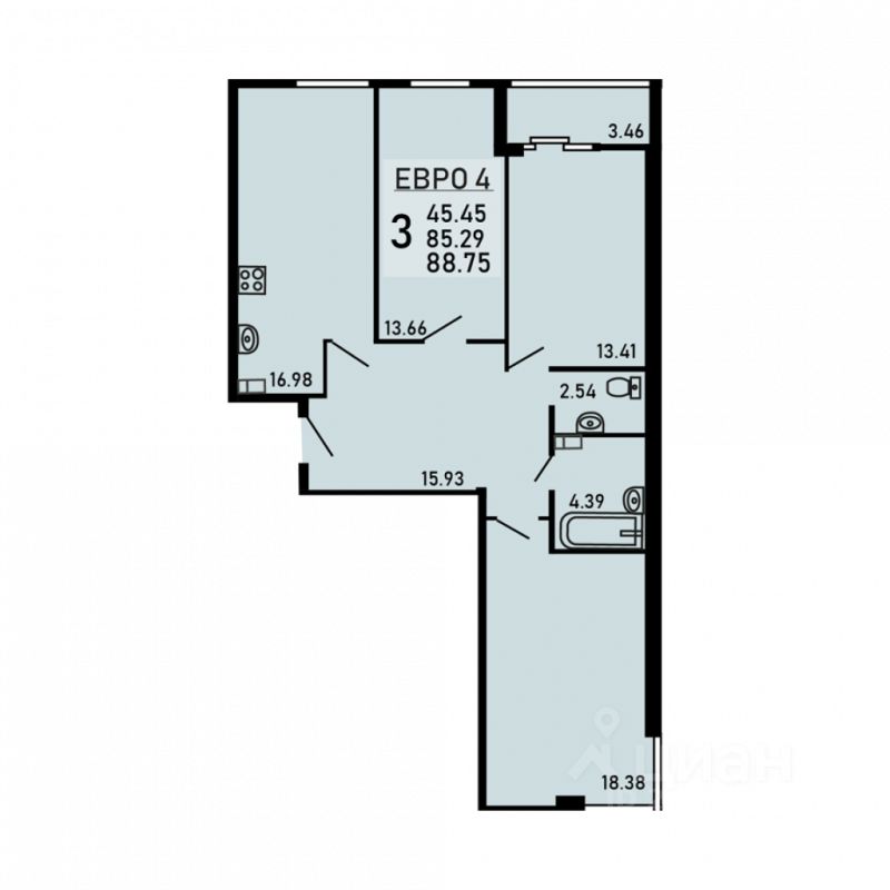 Трехкомнатная квартира 88.75 кв.м. от застройщика