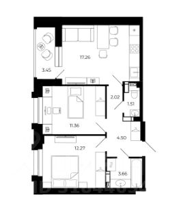 Квартира формат ЕВРО 3-ка. Кухня-гостиная 19.9 кв.м. Спальня 11.7+10.9 кв.м.