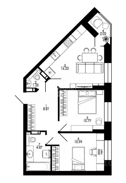 Общая площадь 57 м2