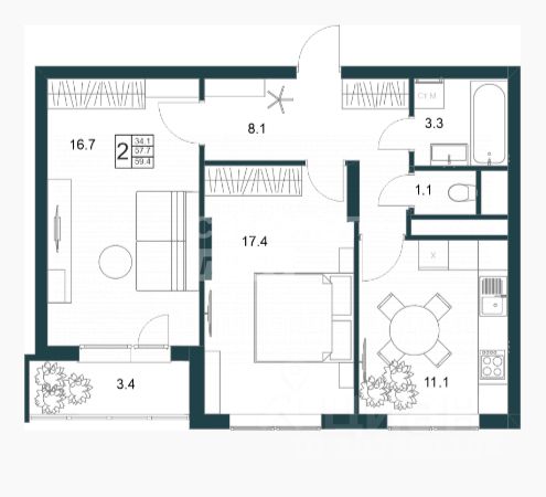 34,1 м²
