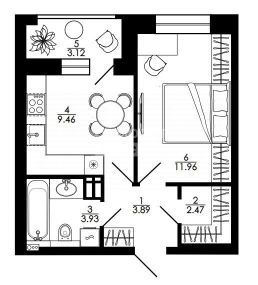 Общая площадь 36,4 м2
