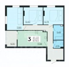 Площадь без учета лоджии 81.24 м2